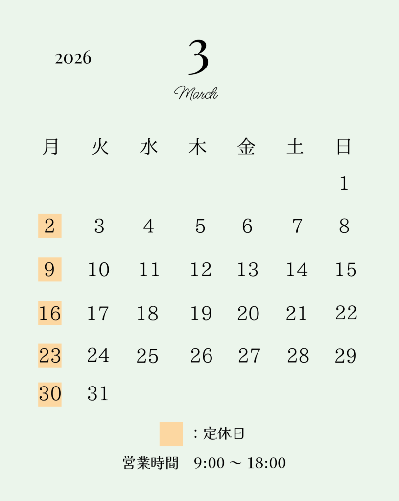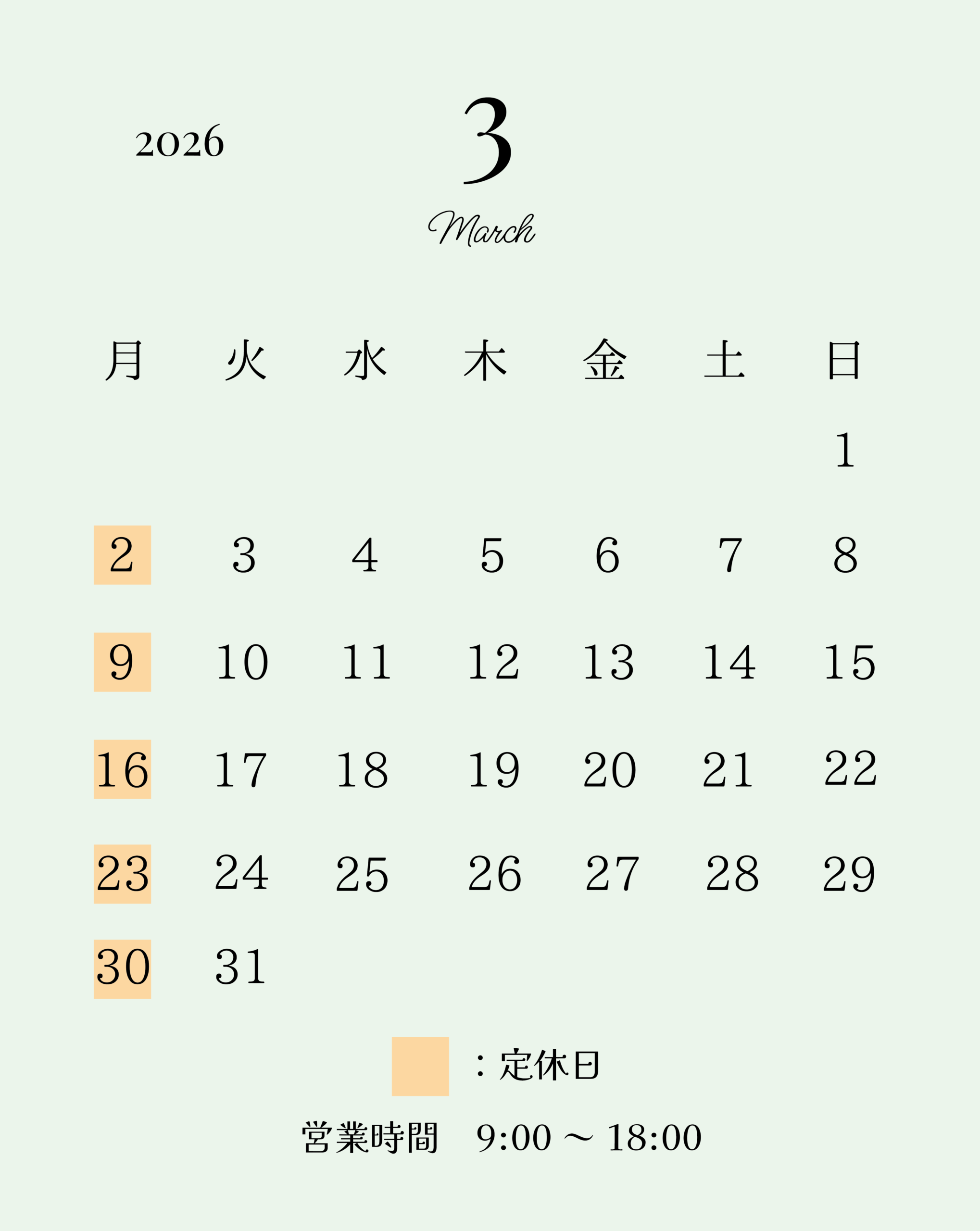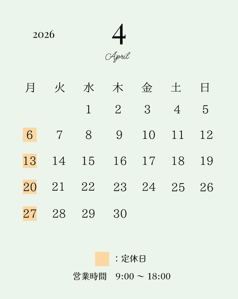 営業時間:9:00~18:00 定休日:月曜日なお7~8月は無休で19時まで。