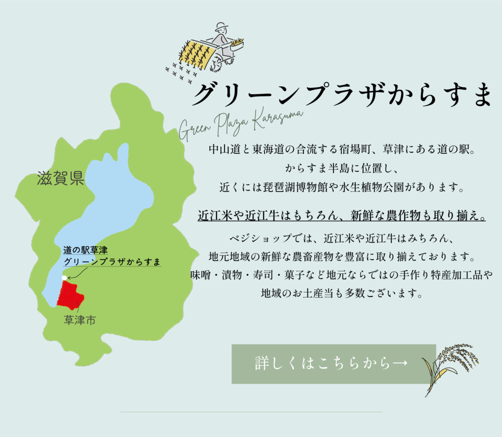 駐車場:56台 (大型車6台 / 普通車50台)道の駅草津横、ロックベイガーデン駐車場もご利用いただけます。