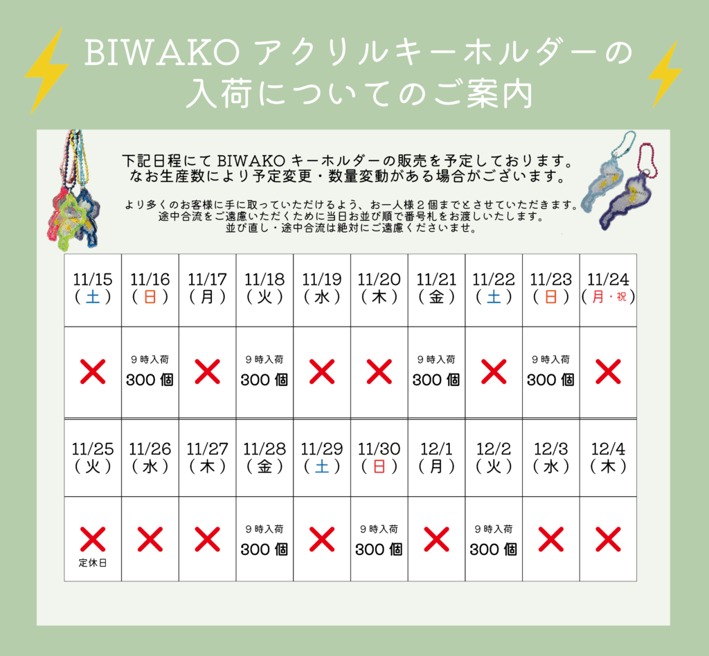 現在大変ご愛顧いただいておりますBIWAKOアクリルキーホルダーの販売日を