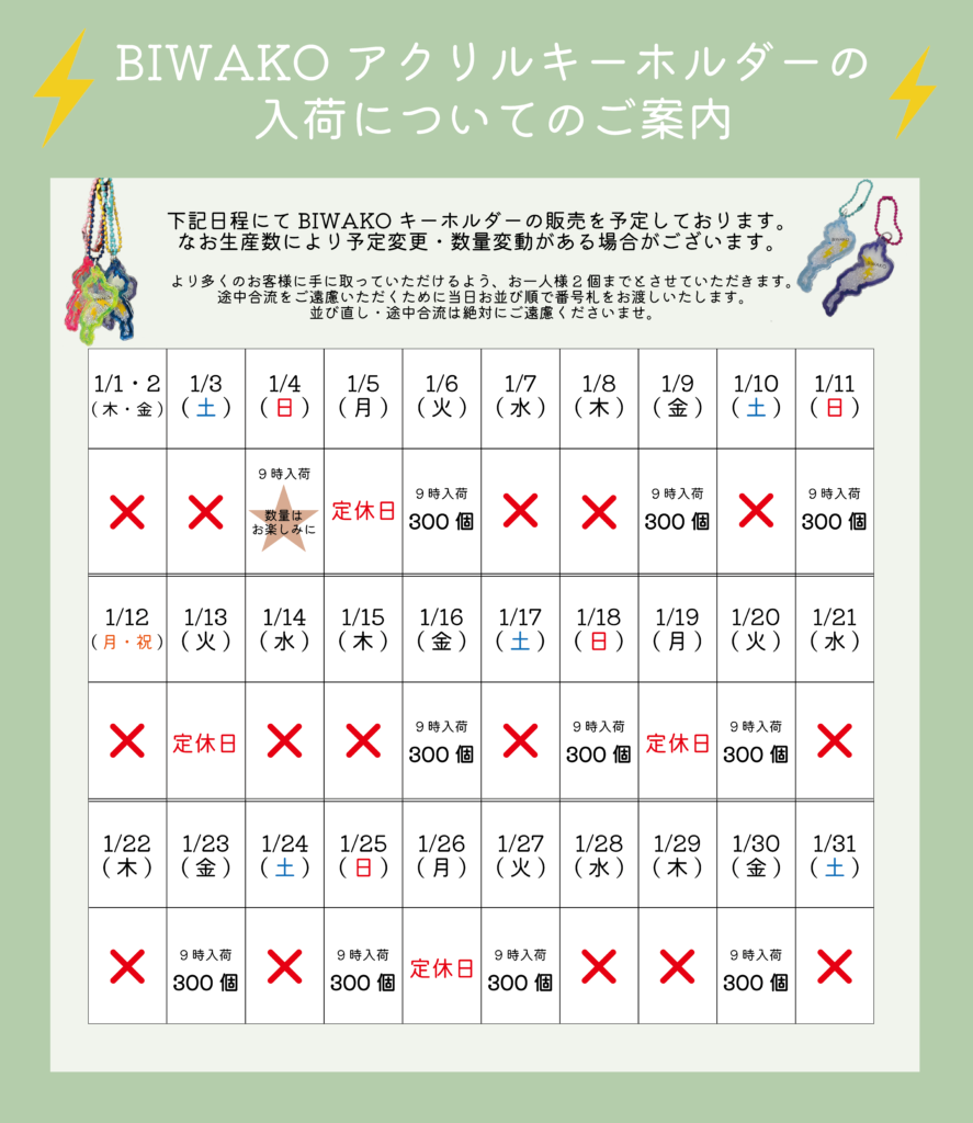 ご愛顧いただいておりますBIWAKOアクリルキーホルダーの販売日を