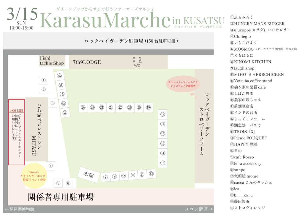 昨年10月より開催しております道の駅草津で行うマルシェ、KarasuMarcheを